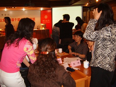 受中国银行北京分行的邀请,周俊树老师为中国银行北京分行朝阳支行开办主题为“职业经理人角色认知与定位”的培训课。 随着银行业的不断开放和竞争,银行职业经理的角色和定位也发生了改变。朝阳支行各分理处的负责人,与周老师一起,通过研讨互动各方面的学习,对新时期银行职业经理人的角色和定位有了深刻的认识,受益匪浅,对周老师幽默睿智的演讲给予一次次掌声。÷